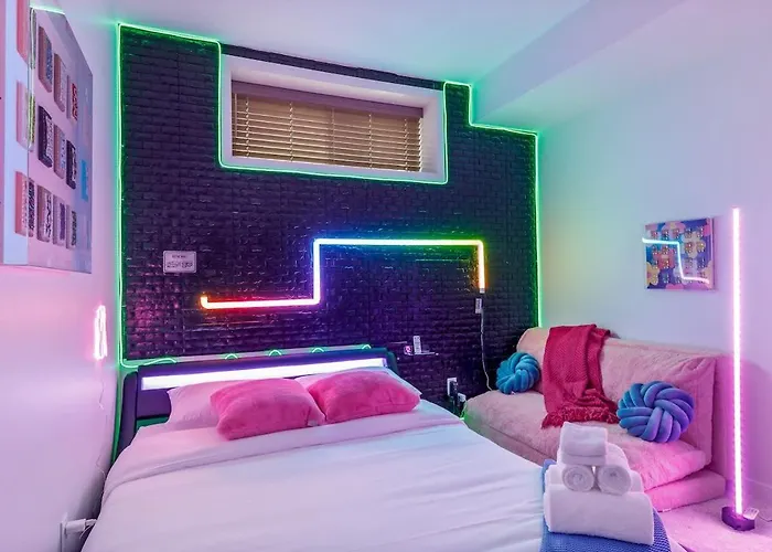 Located approximately 10 minutes by car from the Calgary Alberta Temple, Arcade Neon Lights 70 Min Banff Local Coffee Villa Calgary provides access to various tourist attractions in the vicinity.